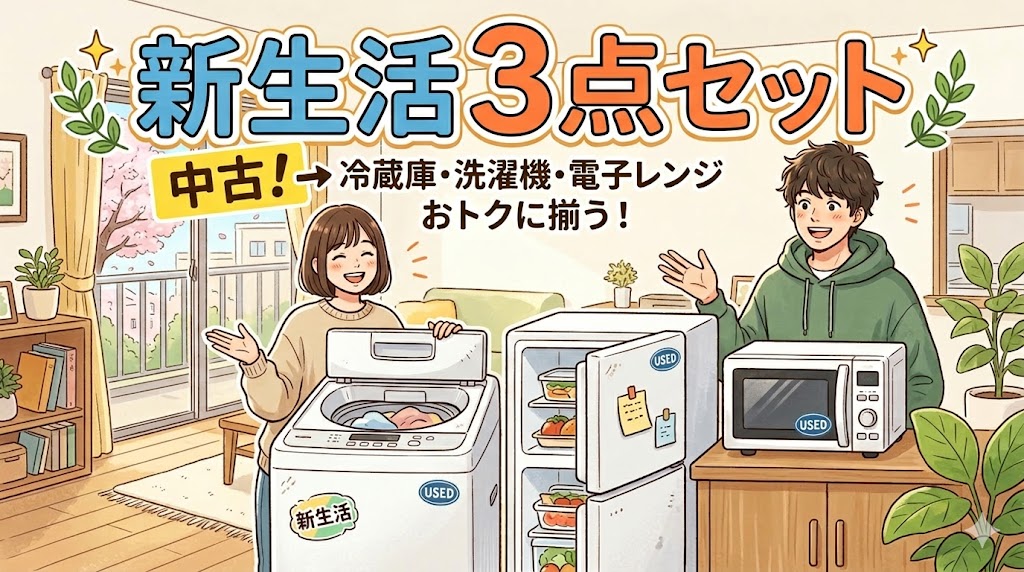 そこで今回は、新生活向けの中古3点セットがどこで買えるのか、実店舗と通販それぞれの販売状況をまとめました。
